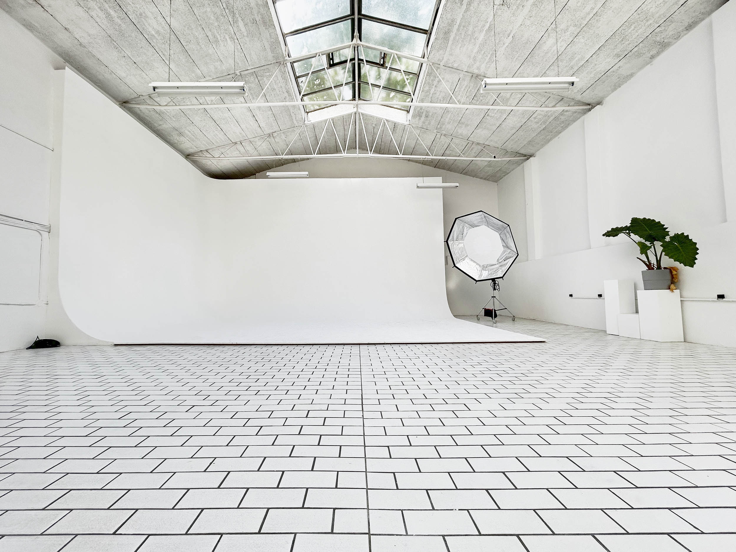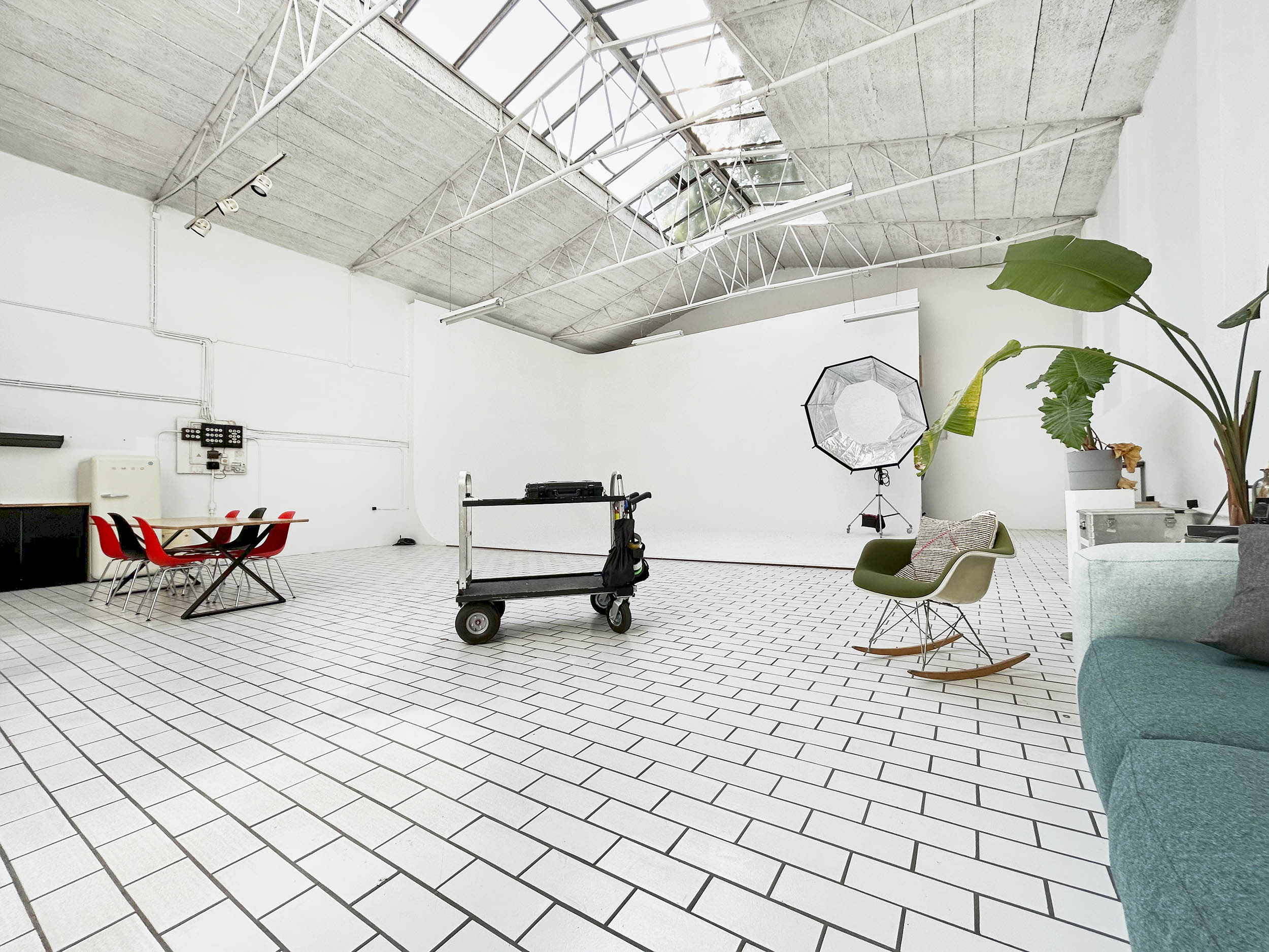 On almost 250sqm we have enough space for your next production with a large infinity cove and a ceiling height as big as your ideas. The studio area is exclusively available to all our customers, partners & friends. If no production is currently occupying the space, we also make it available for cultural purposes and events.